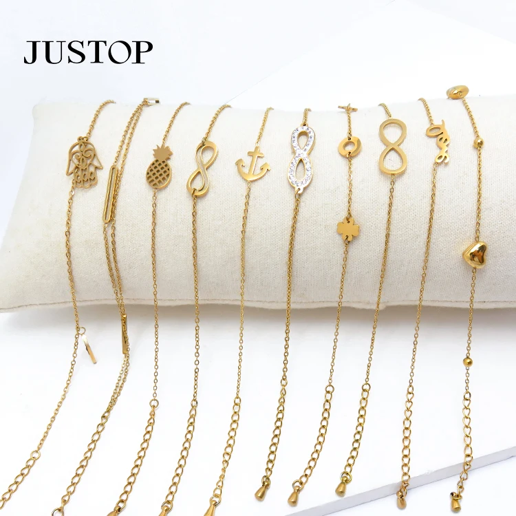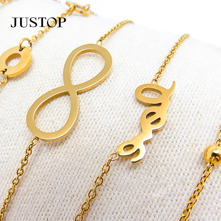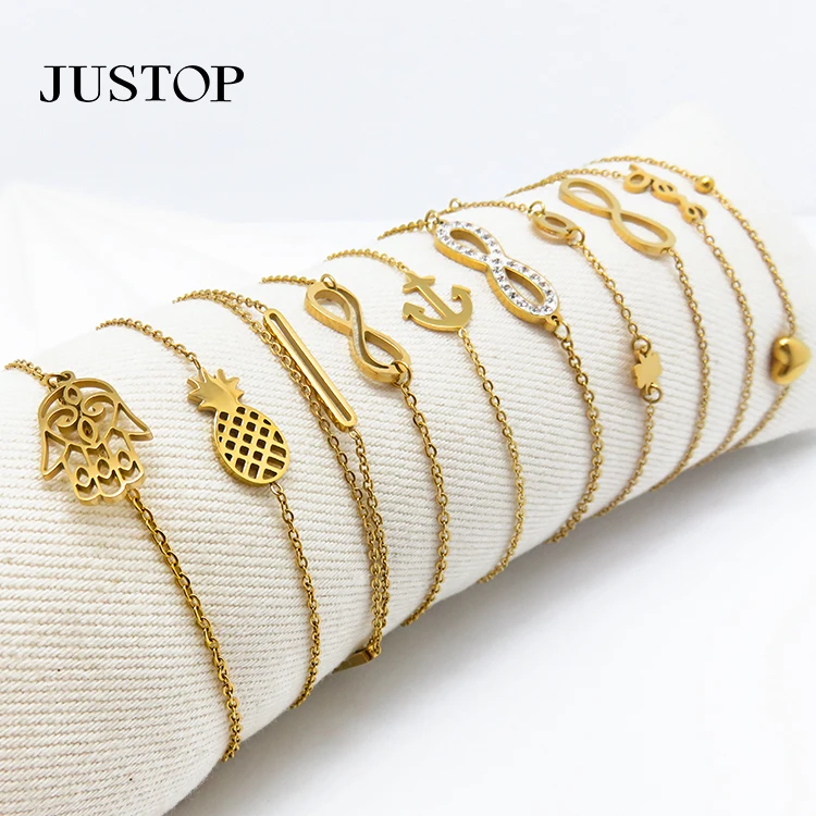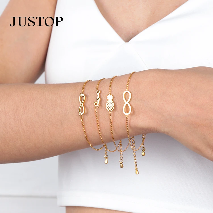 Minimalism Luxury Stainless Steel 18K Gold Women's Zircon Geometric Charms Bracelet Jewelry